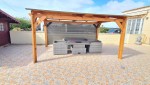 La parcela de 1200 m² es llana y está totalmente vallada, y cuenta con un precioso jardín con piscina privada, una gran terraza para tomar el sol y un amplio patio. La parcela cuenta con un bar con nevera, varias pérgolas y varios cobertizos de madera. La parcela es muy privada y tiene mucho espacio para aparcar varios coches.
