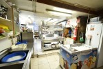 A la izquierda de la entrada principal está la cocina de buen tamaño, que viene completamente acondicionada con equipos y electrodomésticos necesarios para la actividad. Dispone de la licencia para atender al sector público, el bar-restaurante también cuenta con una gran bodega y un sótano que sirve de almacenamiento de productos y bebidas, una rareza en España, con acceso interno que está detrás de la barra, habiendo otro acceso a través de dos puertas dobles del sótano haciendo que sea más fácil recibir las entregas.