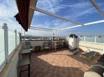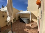 This is a spacious townhouse in Benijofar on the Costa Blanca South, East facing, with a build size of 145m2. NO COMMUNITY FEES. The ground floor consists of a front terrace where you get the morning sun, fully fitted large kitchen with room for table and chairs, shower room on ground floor and a good size cosy lounge with log fireplace and dinning area with patio doors leading out to a large private patio out the back with dinning area for dinning al fresco or just to chill in the afternoon sunshine. First floor has the master bedroom with balcony and a large en-suite which also doubles as the family bathroom (separate entrance), but you could convert into two separate bathrooms if required. You also have two more double bedrooms. From the master bedroom balcony you have the steps going up to the private roof terrace with panoramic views, ideal for sunbathing, with also storage containers. Outside at the front of the property is a driveway leading up to the garage which also has internal access to the property where the utility room is and lots more storage space.You have many extras with this property, air conditioning, fitted wardrobes, off road parking, garage 15m2 and plenty of storage. This property has been well maintained and well worth a visit!