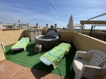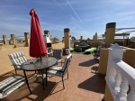 Ideal two bedroom holiday apartment, on the first floor, south west facing in San Bartolome, Costa Blanca South. The property has an open plan fully fitted kitchen, two double bedrooms and a family bathroom newly refurbished with walk in shower, living come dining area with large patio doors that open up onto a good size balcony with stairs going up to a large private solarium of 50m2 with magnificent mountain views, plenty of room for dining, sunbathing and hot tub, including a brick barbecue and also a storage cupboard. The property has been updated and partly modernised, this is a great lock up and leave property to have at this fantastic price of only 59.000€. Please contact us for a viewing!