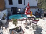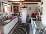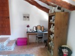 A gravel driveway leads up to the front door with lockable reja, and there is plenty of space for parking near the property. You are surrounded by stunning views of the countryside and mountains. You enter the good sized kitchen with all necessary facilities and ceiling fan. An archway to the right leads into a spacious pantry and also a shower room with wc and sink.  Steps to the left lead into the cosy and welcoming lounge and double wooden doors with lockable rejas lead outside. There is also a unique dining area/room, and a door from here leads to a shed.