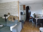The fitted kitchen comprises of wall and floor units, gas hob with extractor above and electric oven below, fridge freezer and there is room for table and chairs at the entrance to the kitchen.