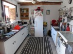 La puerta de entrada principal de madera se abre a la gran cocina equipada con vigas a la vista en el techo, hay unidades a ambos lados y una cocina de gas independiente, un arco conduce al lavadero independiente con lavadora y unidades de almacenamiento en la pared y el suelo. Desde aquí se encuentra el cuarto de baño con ducha con azulejos, WC y lavabo con pedestal.