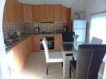 La cocina está equipada con una buena variedad de armarios altos y bajos, una placa de gas con campana extractora arriba y horno abajo y un fregadero doble. Hay un amplio espacio para una mesa de desayuno y sillas. Un amplio arco conduce a un salón de buen tamaño con chimenea. Hay dos habitaciones dobles y un cuarto de baño familiar con plato de ducha con cortina, inodoro y lavabo en un tocador.