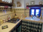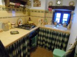 A traditional wooden stable style front door opens into a cosy living room with free standing wood burner which has an exposed outlet pipe to maximise on the heat produced. A door leads through to an Andalucian style kitchen with a double sink, gas hob with oven below, microwave, fridge / freezer and washing machine. Also on the ground floor is a fitted cloakroom with WC and wash hand basin.