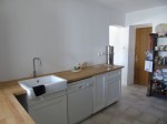 Desde el pasillo, un arco conduce a la cocina totalmente equipada que consta de muebles bajos empotrados, fregadero estilo mayordomo, cocina de gas, un arco conduce al comedor separado que tiene una puerta de establo de madera tradicional que conduce a la parte delantera de la casa. Al final de la cocina, una puerta se abre al moderno cuarto de baño que consta de una ducha a ras de suelo con azulejos, WC, lavabo insertado en un tocador con almacenamiento. Al lado de esto, otra puerta conduce por las escaleras al primer piso y tiene almacenamiento debajo de las escaleras.