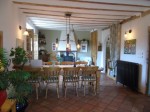 To the front of the main house there is a patio with a pretty covered area with olive trees, beautiful feature stone walls which is a fabulous seating and dining area with amazing views. From here traditional wooden patio doors with shutters open into a stunning, large dining room/family room, feature fireplace with woodburner, ceiling fan and traditional built in cupboards and exposed ceiling beams. An archway through to the fully fitted andalucian style kitchen with marble double sink, Rangemaster cooker, marble topped island with storage, full wall of cupboards, fridge / freezer and dishwasher.