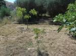 Hay dos pequeñas terrazas y un camino que conduce al terreno y esto tiene la posibilidad de ser utilizado para una piscina sobre el suelo. El terreno está plantado de árboles frutales como membrillo, manzano, cerezo, higuera, albaricoque, níspero, peral, granado, ciruelo, laurel negro y amarillo en una parcela vallada y tiene sistema de riego.
