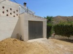 Back to the rear patio from the kitchen, there is a building which houses the outside shower, wash hand basin and WC. There is another outbuilding which was previously old animal rooms that have been converted into a games room with rustic style walls and a new tiled floor. There are stpes leading up to the higher level with vehicular access and a store room.
