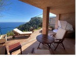 On the ground floor is the living area with its double height ceiling, large windows with teak sliding doors and double glazing, direct access to the terrace from which you can enjoy an unforgettable view.Furthermore, there is the kitchen with adjoining pantry, laundry room and a bathroom.The 2 bedrooms are on the upper floor. The master bedroom with its large en suite bathroom has direct access to the terrace from which you can also enjoy a breathtaking view.