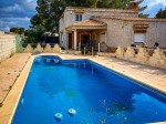 La zona exterior está equipada con una piscina, ideal para uso familiar, y diferentes construcciones auxiliares: un almacén/cochera de unos 30 m², barbacoa cubierta, trastero y espacios que permiten reorganizarse según necesidad.
